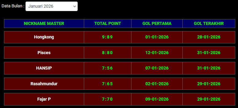 | 31 | Setiadi22 | 3:30 | 10-02-2026 | 18-02-2026 |